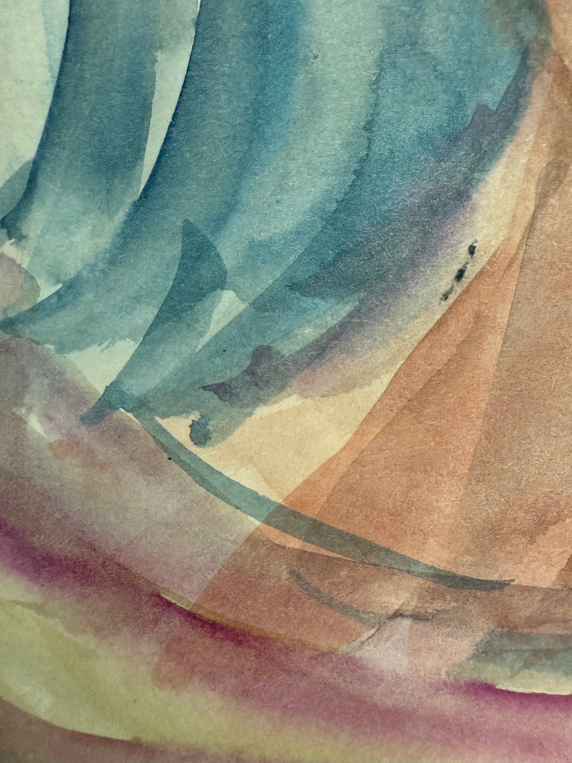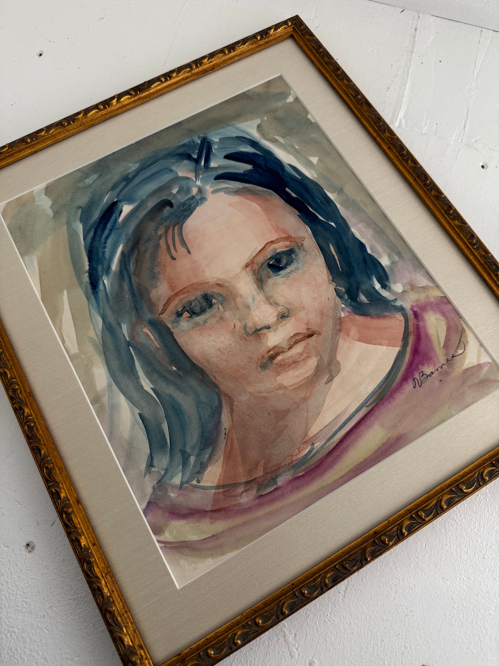Mid-century watercolor of a girl with loose strokes and beautiful, vibrant coloring. Signed "Barnes" in lower righthand corner.