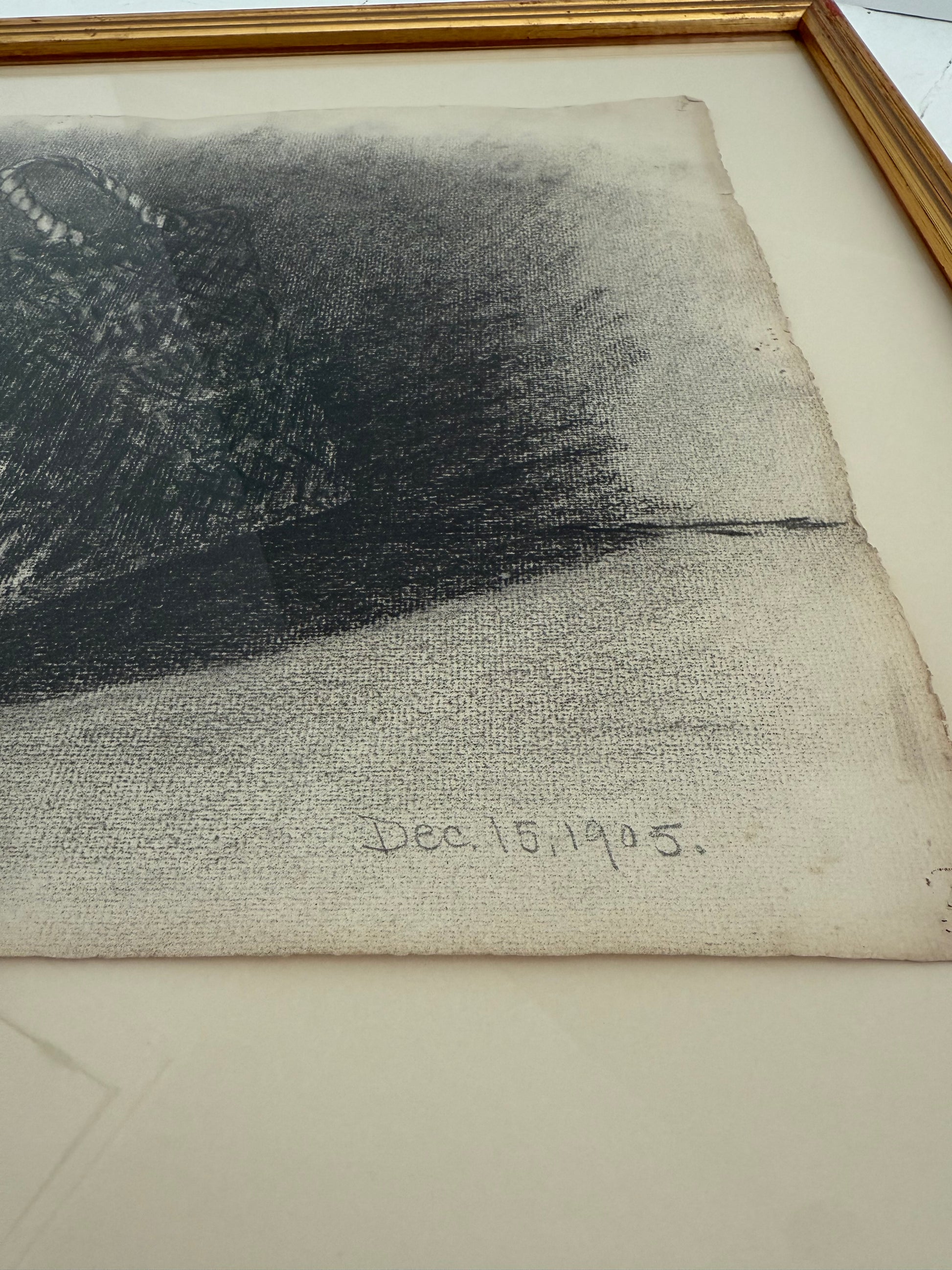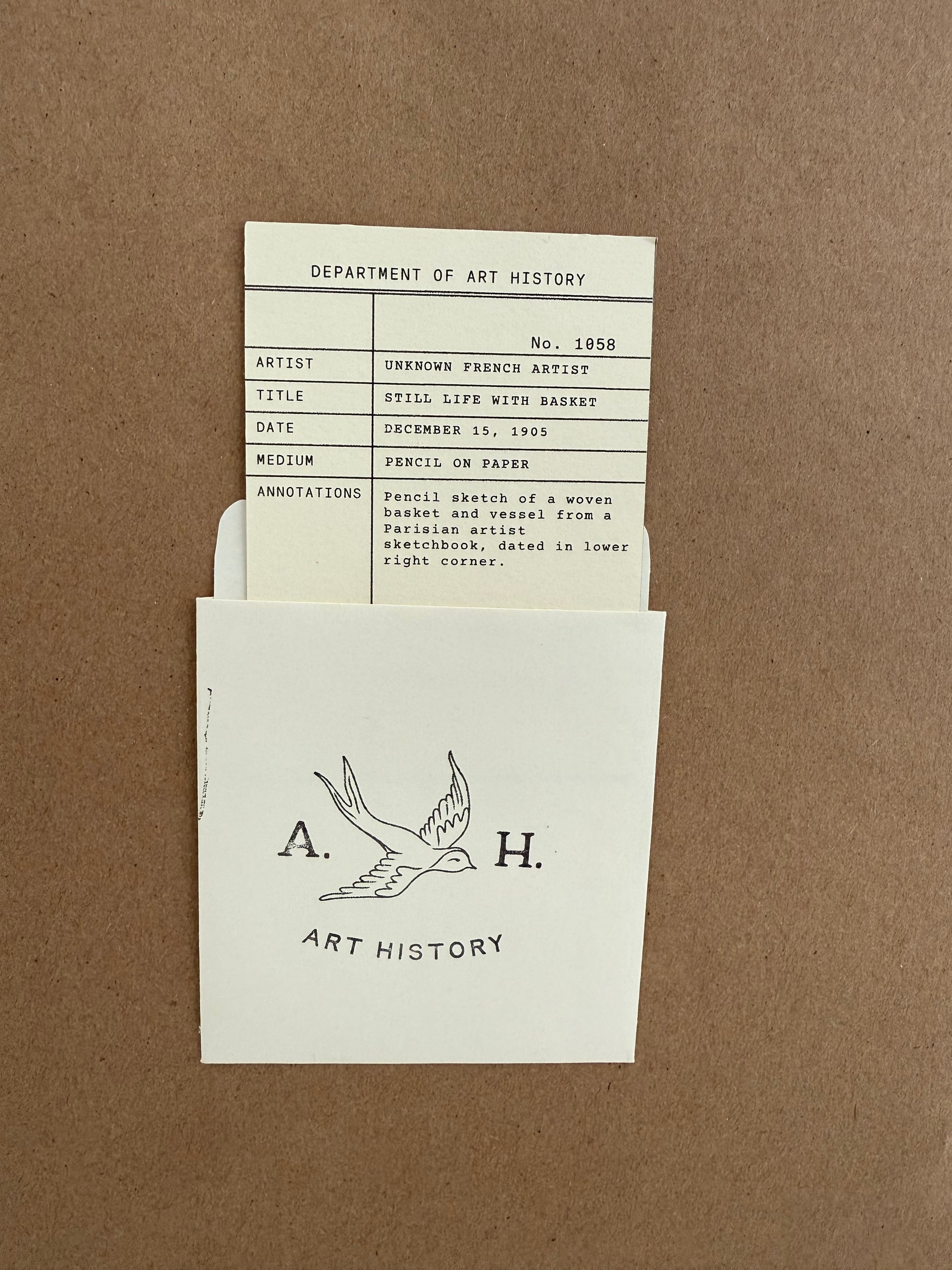 Graphite drawing of basket and vessel from a Parisian sketch book. Dated December 15, 1905.
